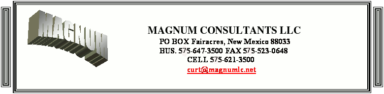Email or Contact Curtis Kiser - P.O. Box 1350 - Fairacres, NM 88033 - (575)647-3500